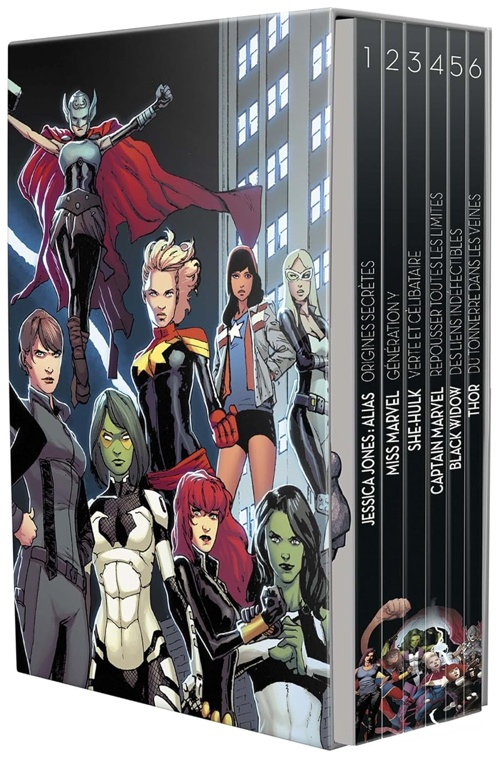 Retrouvez les six albums de notre nouvelle collection de printemps à prix canon, dans un coffre limité illustré par David Marquez et incluant six ex-libris exclusifs ! Cette année, les héroïnes sont à l’honneur, avec Jessica Jones, Miss Marvel, Miss Hulk, Captain Marvel, Black Widow et Jane Foster !